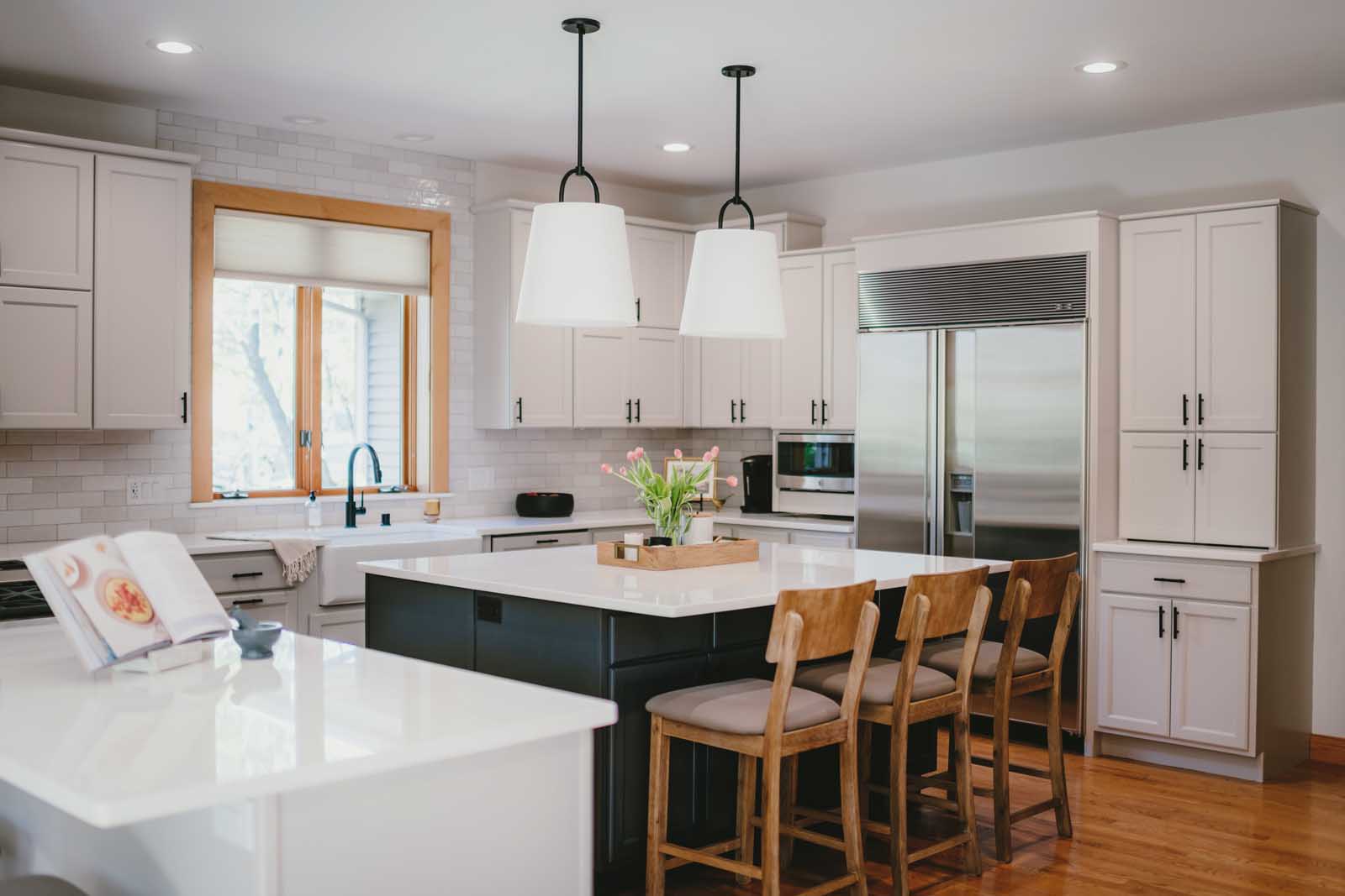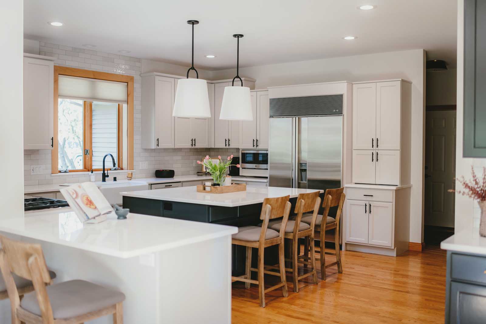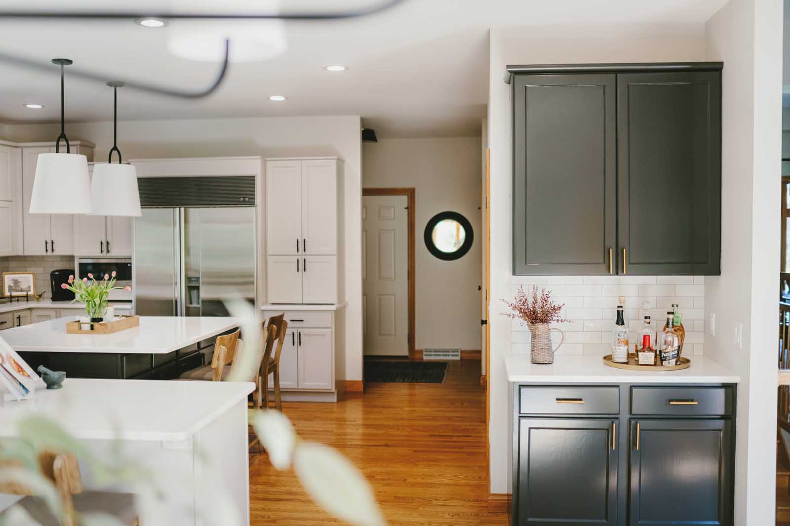 Nestled in a quiet country neighborhood in Middleton, this family’s home was ready for a refresh. This first-floor transformation touched the kitchen, dining nook, laundry room, and lighting and paint throughout. The homeowners wanted to move away from the colorful and heavy finishes that once defined the space and create something lighter, calmer, and more reflective of their clean, refined style. By softening the palette, introducing warm neutrals and rich contrast, and layering in thoughtful details, we brought new life to the heart of their home. The result is a first floor that feels brighter, more balanced, and effortlessly inviting.
