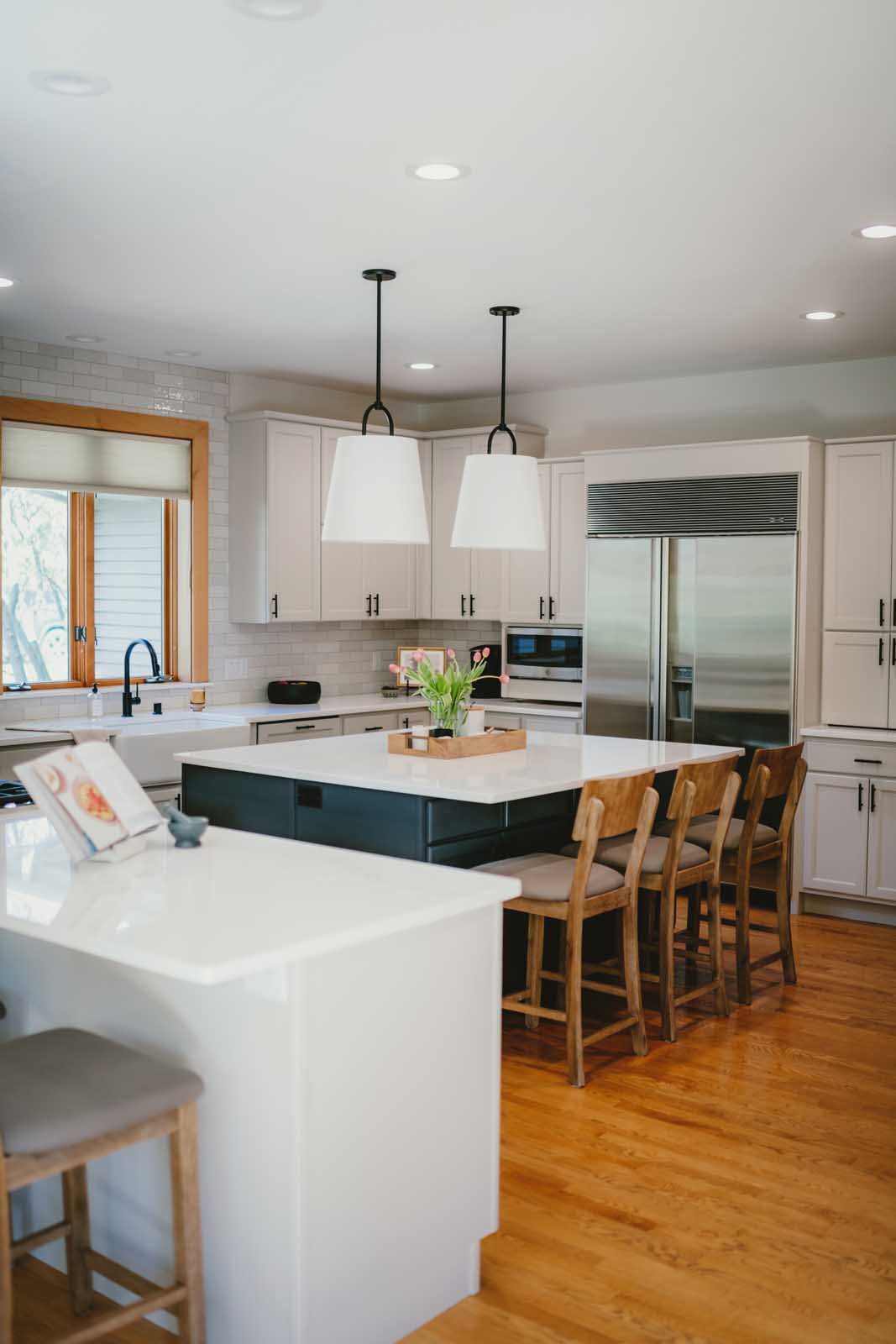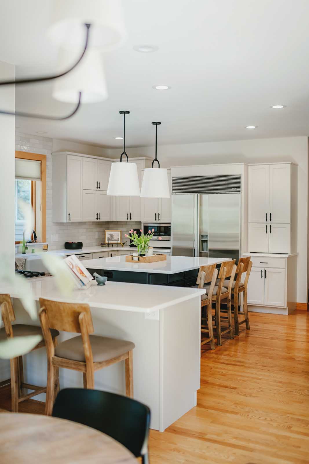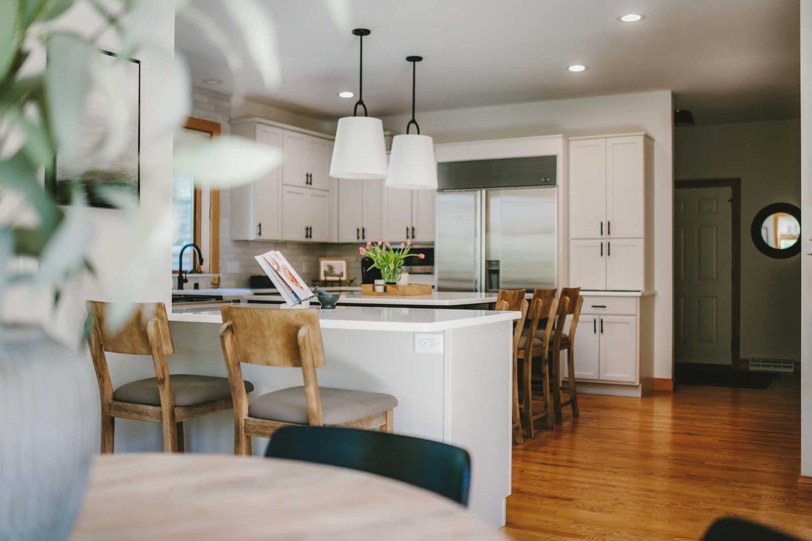 Nestled in a quiet country neighborhood in Middleton, this family’s home was ready for a refresh. This first-floor transformation touched the kitchen, dining nook, laundry room, and lighting and paint throughout. The homeowners wanted to move away from the colorful and heavy finishes that once defined the space and create something lighter, calmer, and more reflective of their clean, refined style. By softening the palette, introducing warm neutrals and rich contrast, and layering in thoughtful details, we brought new life to the heart of their home. The result is a first floor that feels brighter, more balanced, and effortlessly inviting.